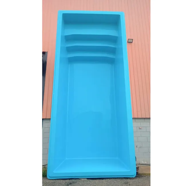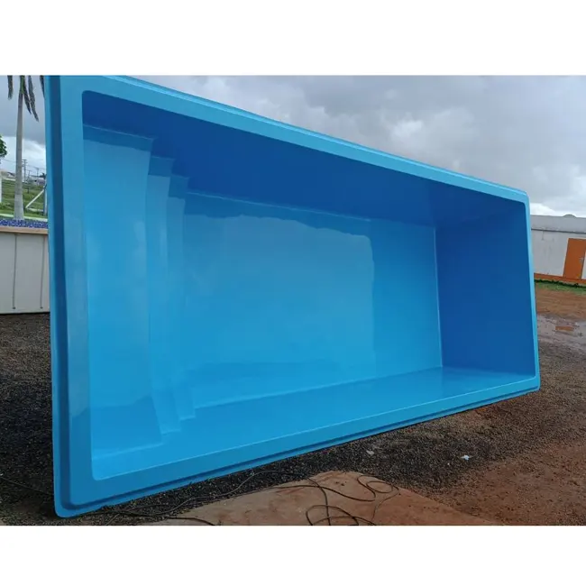 Parte interna Com uma espessa Camada de Gel Coat de alta qualidade Proporcionando Uma Durabilidade maior Do brilho Deixando A piscina protegida e não Deixando desbotar Com o tratamento químico e físico de sua Água